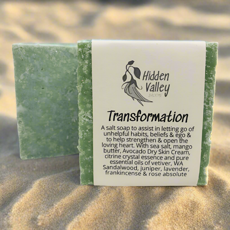 Ancient Rock soap is handcrafted from Broome using natural oils, deep woody essential oils, and aesthetic mineral marbling—plus crystal essences for an energetic ritual.