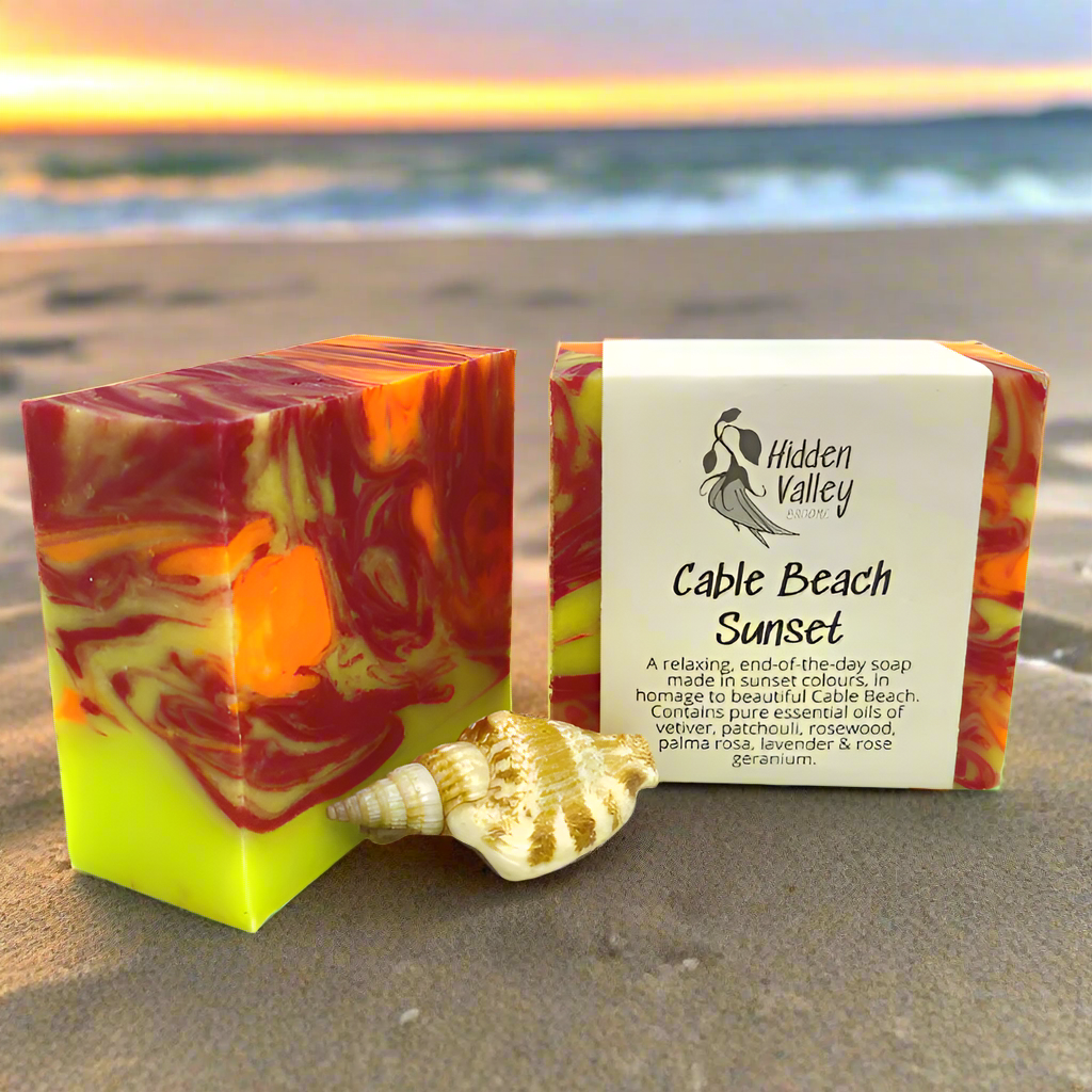 Inspired by the remarkable rock formations of the Kimberley and Broome region, Ancient Rock Natural Soap is a sensory tribute to country. Handcrafted in small batches at Hidden Valley Broome using traditional cold-pressed methods, this soap showcases deep woody and spicy essential oils against a backdrop of marbled ochre, red, yellow, and black natural pigments—making each bar a work of art.
